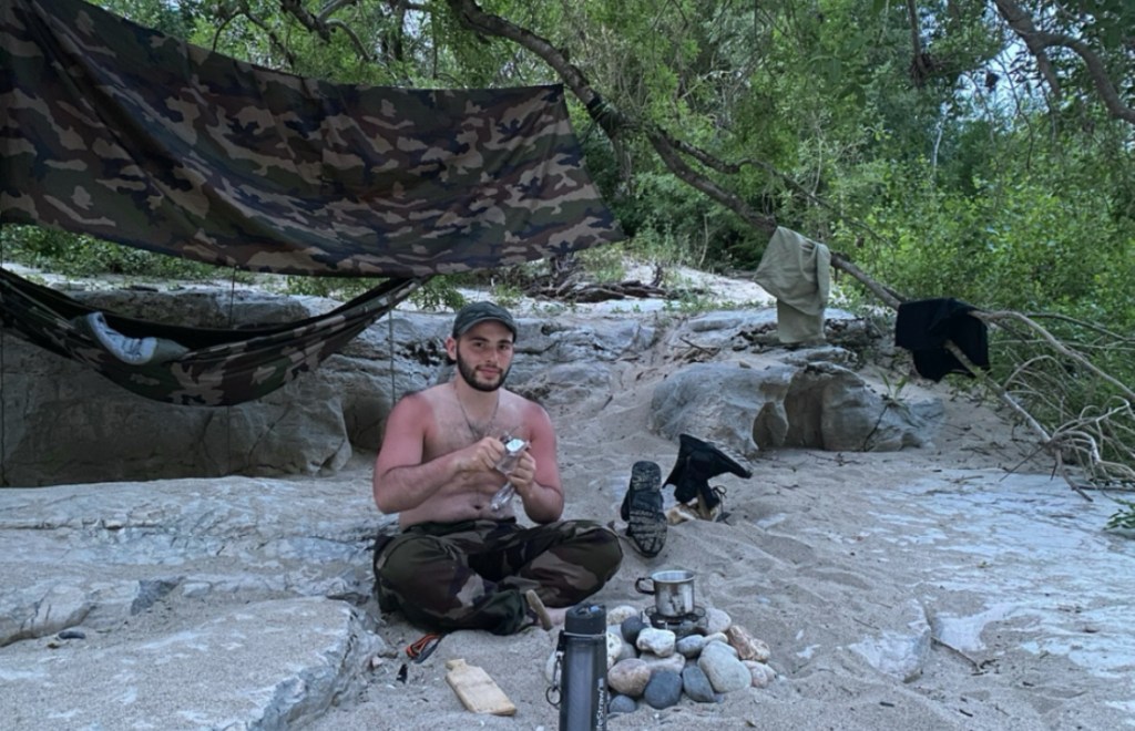Il dort dehors, se nourrit de ses réserves et de boîtes de conserve, s’abrite dans les forêts, sur les plages ou en montagne —